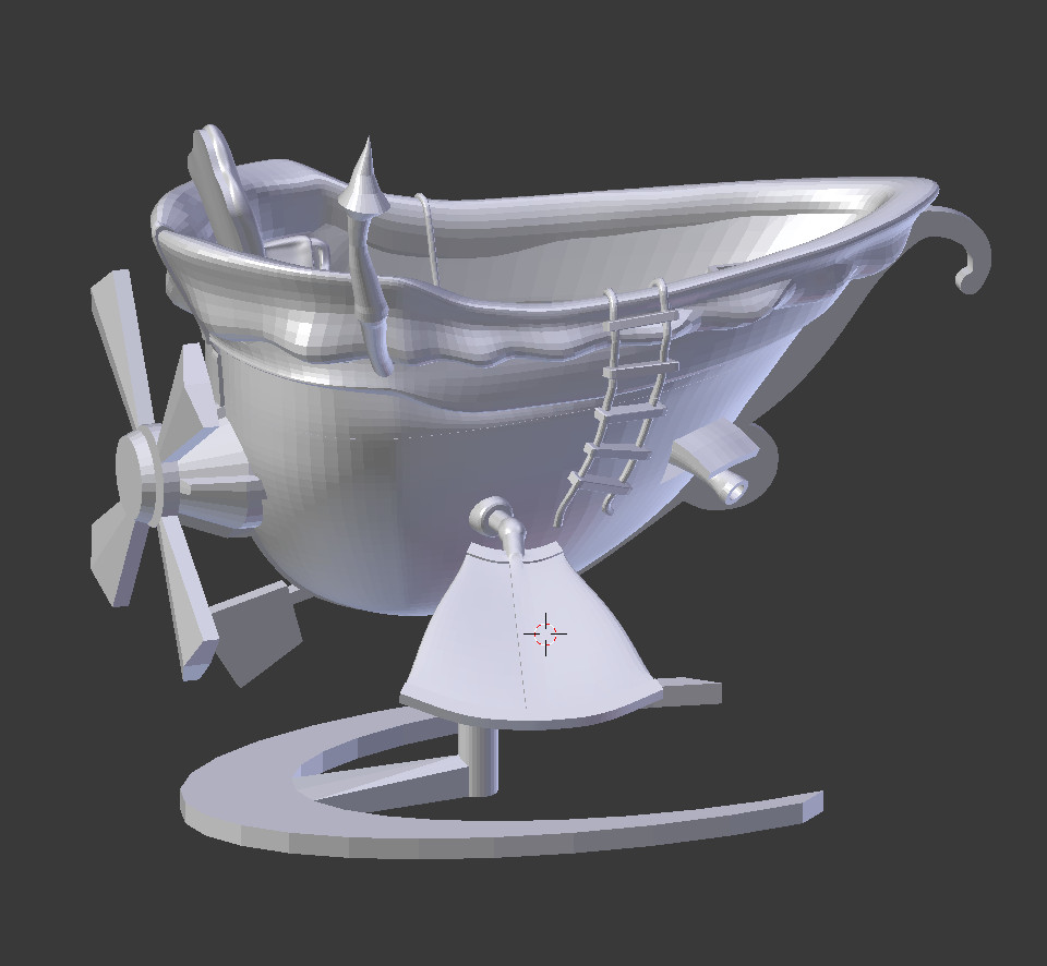 Le jeu est maintenant en vente et connait un joli petit succès. Il y a bien longtemps que j’ai commencé à modélisé cette version de l’aéronef, plus fidèle à l’illustration de Gaetan. En fait j’ai commencé à travaillé dessus avant même qu’on ne se décide à faire le punch board, à l’époque ou la version plastique était encore d’actualité.