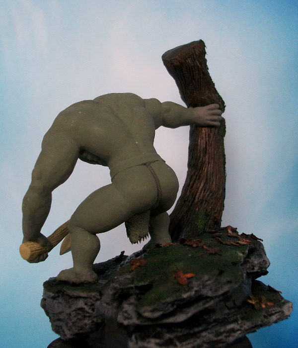 A la base, j’avais juste créé une armature en m’inspirant d’une illustration de D&D en prévision d’un stage d’une semaine de sculpture avec Jerem en juillet 2012. Etant hébergé chez Allan, je me suis dis que l’occasion était trop belle d’avoir un sculpteur émérite sous la main pour obtenir plein de conseils. Et effectivement j’ai bossé deux soirées dessus pendant qu’Allan s’occupait de ses propres pièces juste à coté. Les conseils que ce dernier m’a donné ont été très utiles pour obtenir la physionomie fortement musculeuse de ce géant.