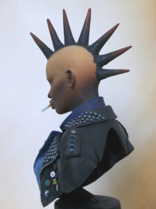 De mon coté, je suis parti sur une base de peinture à l’aérographe pour toutes les grandes zones, puis j’ai fini les détails (yeux, pin’s, boucles d’oreille…) au pinceau.